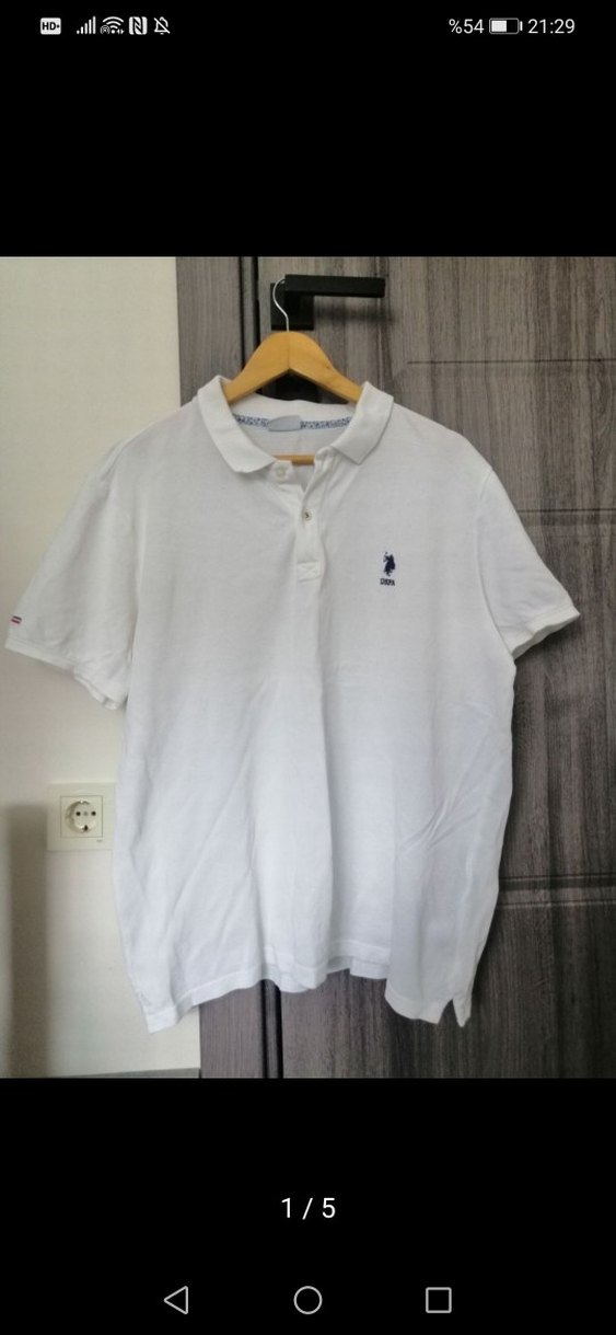 Erkekler için beyaz pamuklu polo tişört, yakalı ve kısa kollu, bol kesim. Günlük sokak stiline uygun rahat ve şık bir parça.