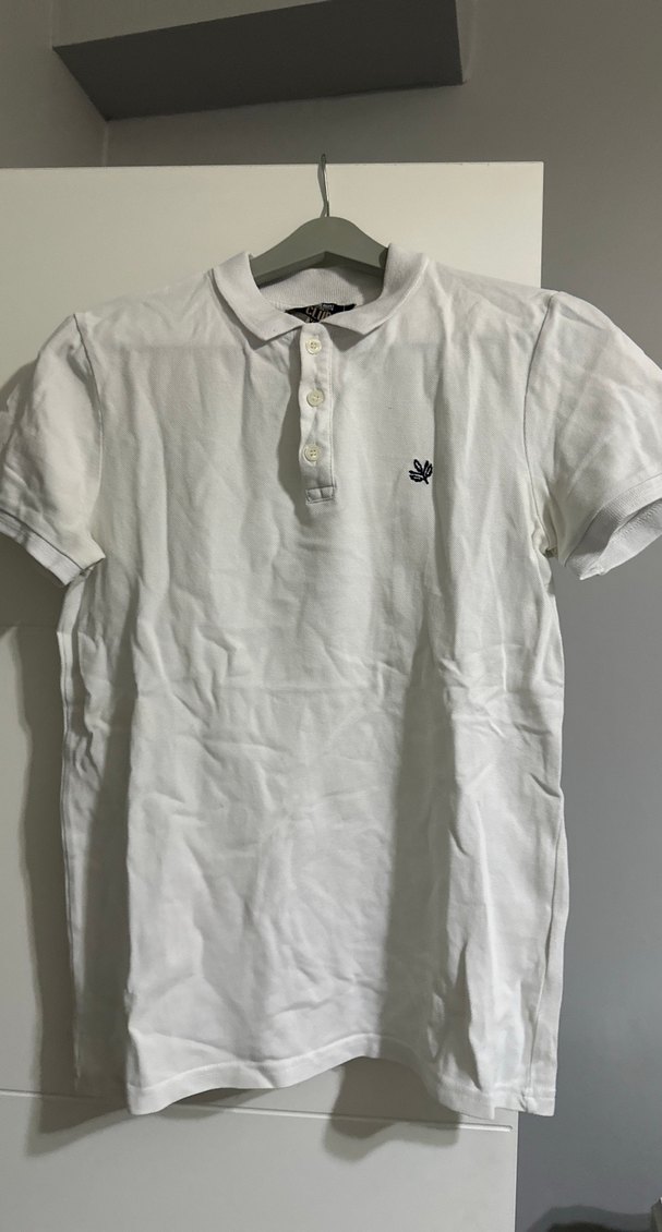 Erkekler için beyaz pamuklu polo tişört, kısa kollu ve yakalıdır. Düğmeli ön kısmı ve Fenerbahçe logosu ile rahat ve şık bir sokak giyimi ürünüdür.