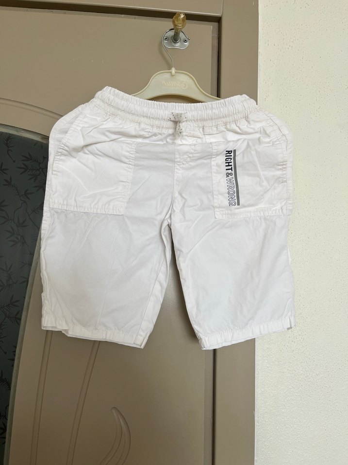 Erkekler için beyaz pamuklu şortlar, rahat kesimi ve zahmetsiz şıklığıyla trend sokak tarzına uygundur. Düz ve desen içermeyen tasarıma sahiptir.