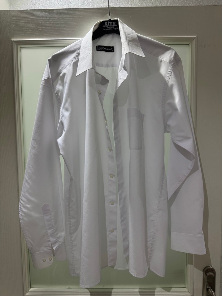 Erkekler için beyaz pamuklu gömlek, yakalı, düğmeli ve uzun kolludur. Normal kesim ofis ve günlük kullanım için uygundur. Çetinkaya marka