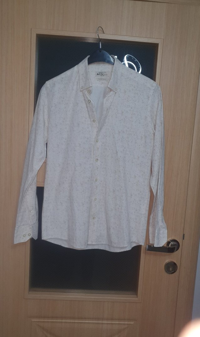 Erkekler için uzun kollu, yakalı ve düğmeli beyaz pamuklu gömlek. Normal boyda, rahat kesim ve günlük sokak stili için uygundur.