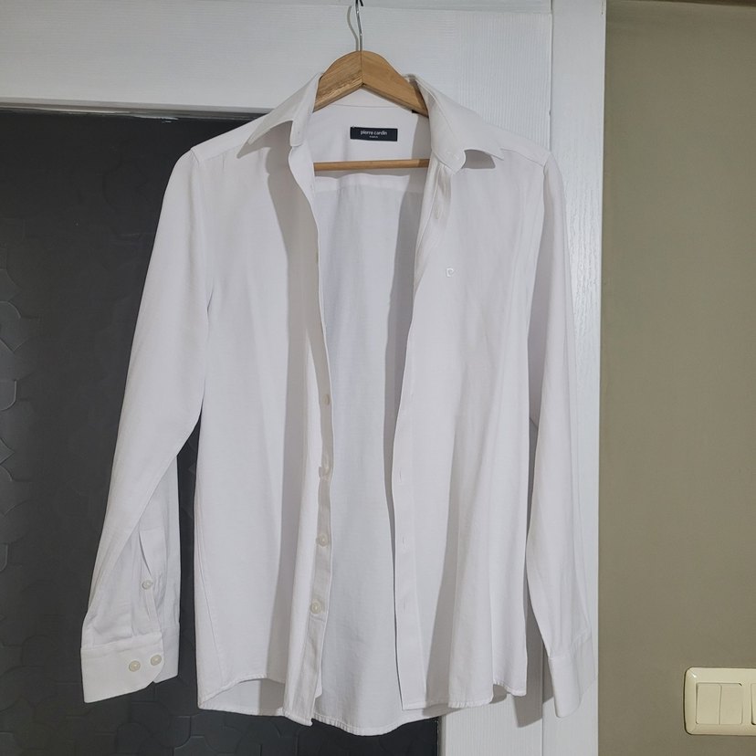 Erkekler için beyaz pamuklu gömlek, regular fit, uzun kollu ve yakalıdır. Düğmeli önü ve minimalist tasarımıyla ofis ve günlük kullanıma uygundur. 2-3 kez kullanıldı.