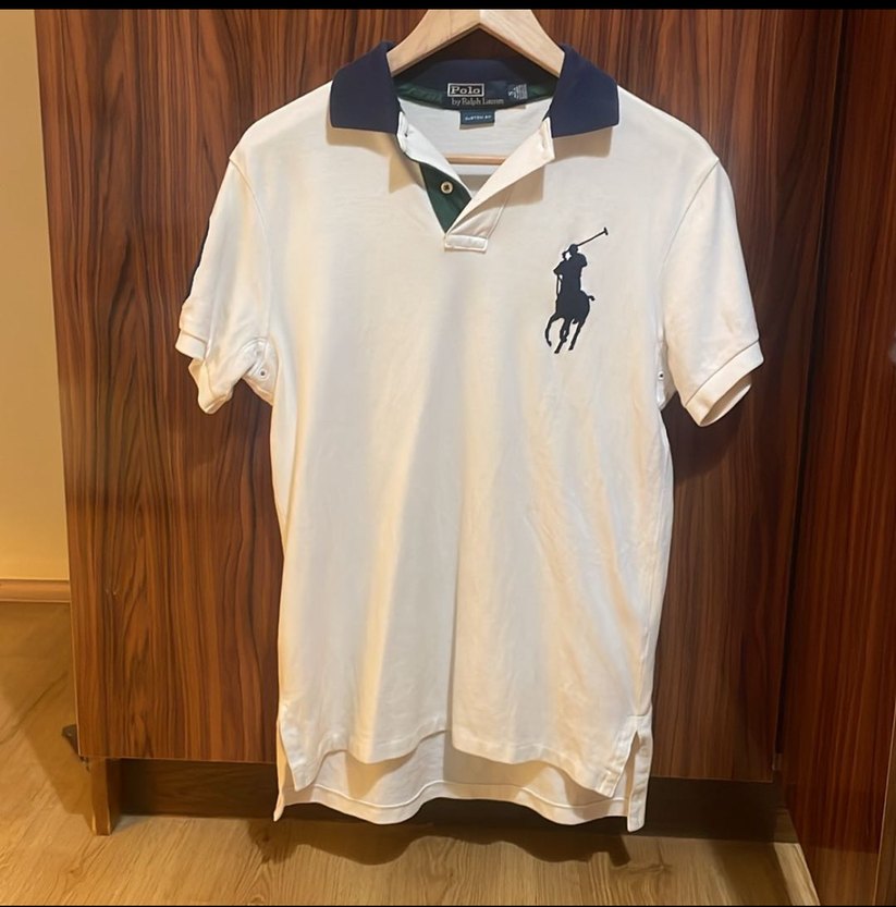 Erkek beyaz polo tişört, yakalı ve kısa kollu. Orijinal Ürün Custom Fit S-M