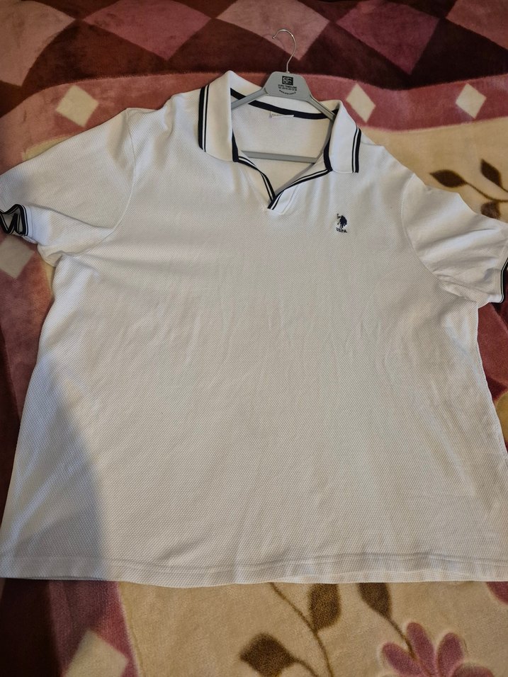 Erkek beyaz polo tişört, kısa kollu ve yakalıdır. Pamuk kumaştan üretilmiş, rahat kesim ve desen içermeyen sade tasarıma sahiptir. Günlük kullanım için uygundur. 5XL Beden çok temiz bir iki kez anca giyilmiş yıkadım ama ütülenmemiş