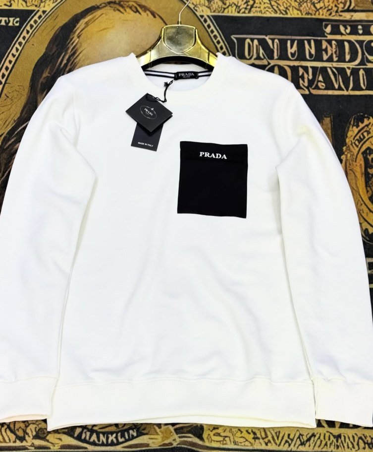 Erkek Beyaz Prada Cep Detaylı Sweatshirt