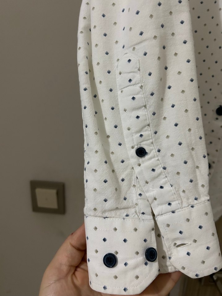 Erkek Beyaz Puantiyeli Pamuk Gömlek