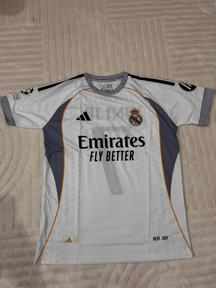 Erkekler için beyaz ve gri tonlarda, kısa kollu, yuvarlak yakalı ve vücuda oturan kesime sahip sentetik kumaştan forma. Baskılı detaylar ve cırt cırt özellik içerir. Spor ve gündelik şıklık için uygundur. ⚽