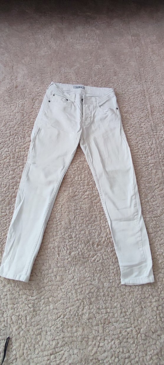 Pamuk kumaştan yapılmış, midi boy ve regular fit beyaz kot pantolon. Günlük kullanım için rahat ve şık sokak tarzı pantolon. maksimum 2 kez kullanıldı sıfır gibi etiketi kesik tahmini olarak 38 bedene uygundur ölçüleri resimlerde mevcut sorunsuzdur