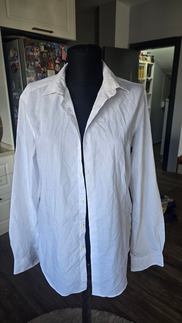 Beyaz düğmeli, uzun kollu, slim fit erkek gömlek. Ofis için uygun, klasik kesim görünüme sahip. ✨