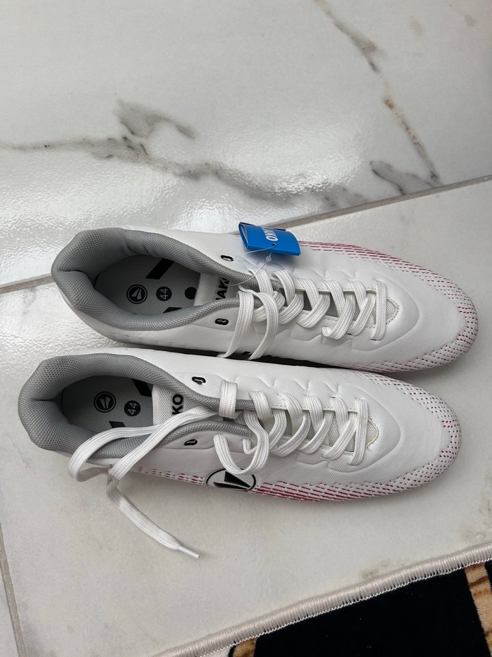 Beyaz erkek futbol ayakkabısı, kauçuk tabanlı ve cırt cırtlı. Spor ve sokak stili için uygun, gri detaylarla trendy casual görünüm sunar. ⚽