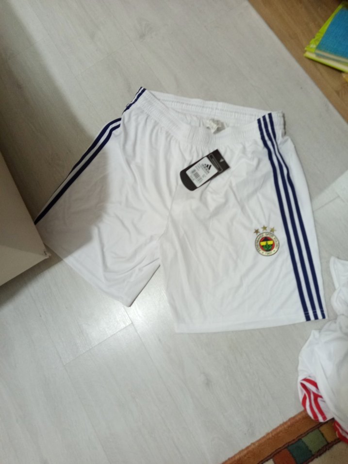 Erkekler için beyaz, bol kesim spor şort. Velcro detaylı, plastik malzemeden, takım arması bulunur. Spor ve sokak stiline uygun. ⚽