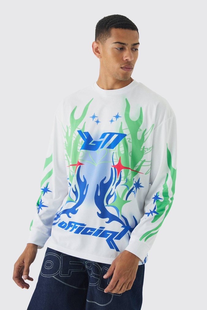 Erkek Beyaz Uzun Kollu Batik Desenli Tişört