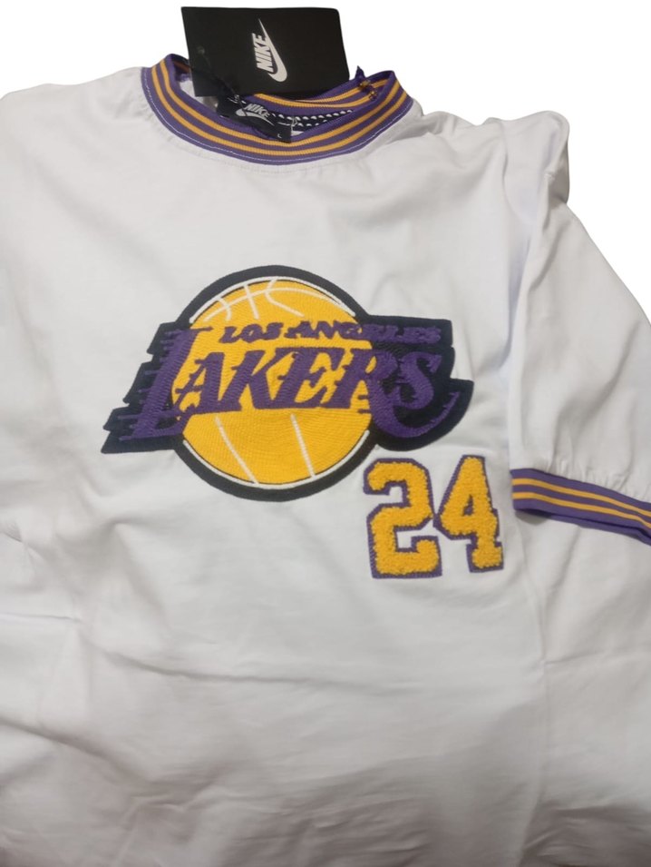 Beyaz, uzun kollu, yuvarlak yaka, Los Angeles Lakers baskılı ve düğmeli, rahat kesim sweatshirt. Yumuşak ve sıcak kumaştan üretilmiştir.