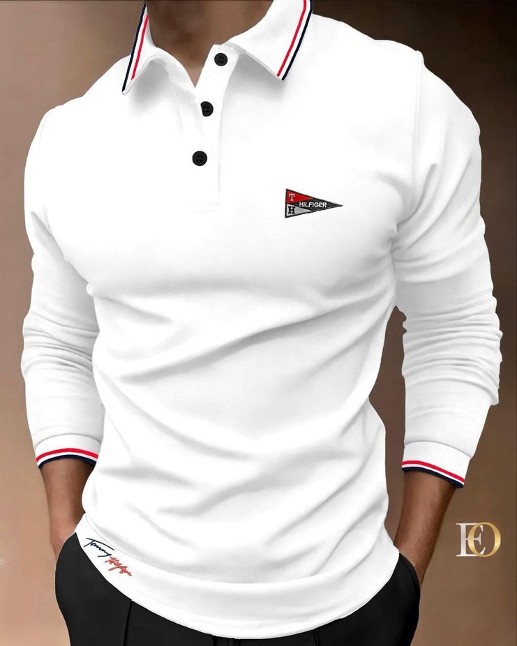 Erkekler için beyaz uzun kollu polo tişört, düğmeli yaka ve göğüste baskılı logo içerir. Pamuk kumaştan, regular fit ve normal boyda, rahat sokak stili için uygundur. 2 iplik pamuklu kumaş.M L Xl ve XXL bedenler.