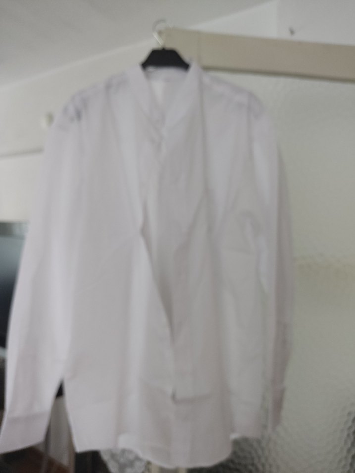 Yumuşak pamuktan üretilmiş beyaz erkek gömleği, V yaka ve uzun kollu. Düzenli kesim ve düğmeli ön detaylı, ofis için uygun. Minimalist ve sade tasarım.