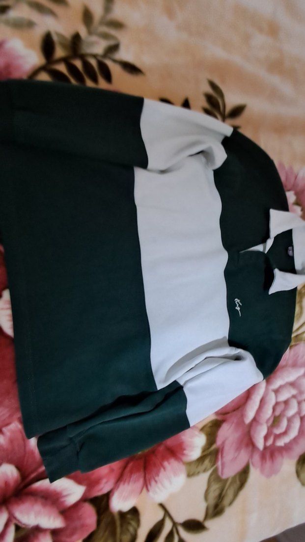 Erkek beyaz yeşil Uzun Kollu Polo Yaka Tişört