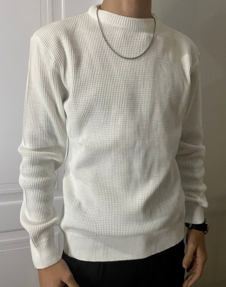 Erkek Beyaz Yuvarlak Yaka Örgü Kazak