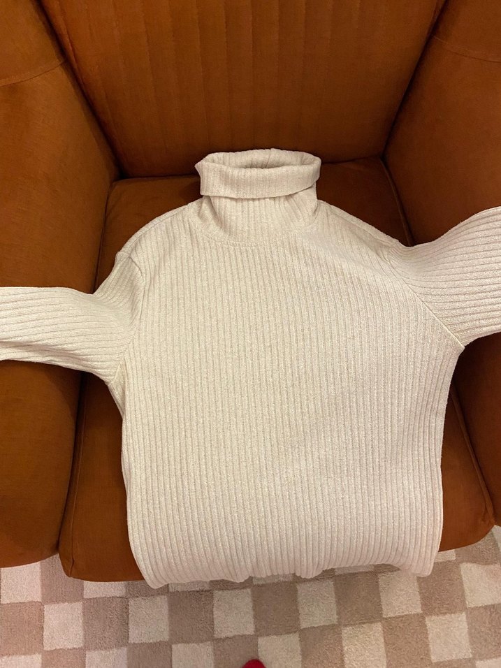 Bu fitted triko, boğazlı ve örgü dokusuyla rahat ve sade bir tarz sunar. Uzun kollu ve normal midi boydadır.