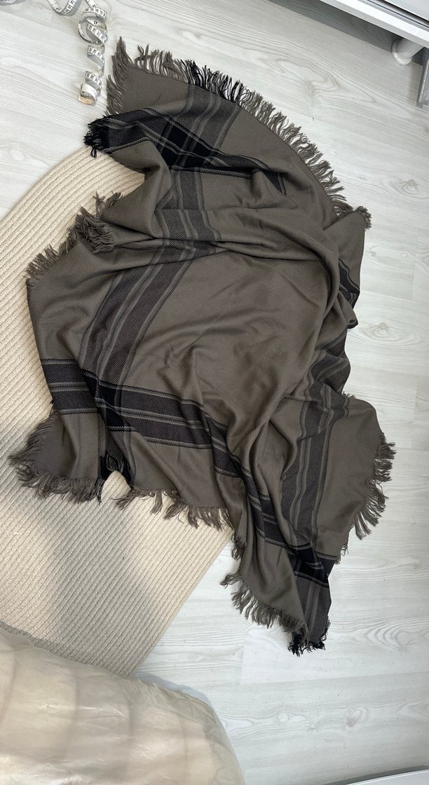 140 a135 Bu uzun gri erkek atkısı, yumuşak dokusu, ince koyu çizgileri ve püsküllü kenarlarıyla bohem ve retro tarzını yansıtıyor.