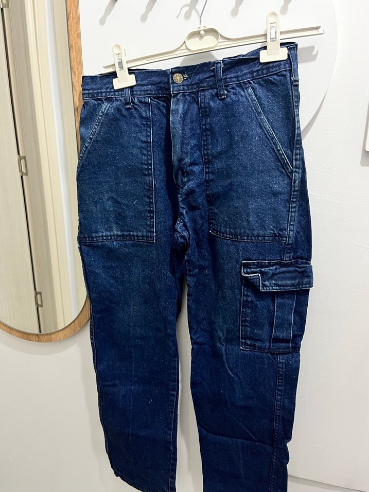 Erkek Bol Kesim Midi Kot Pantolon iş pantolonu