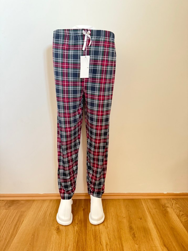 Bordo ve gri ekose desenli, bol kesim, belden bağlamalı ve manşetli erkek pijama altı. ️