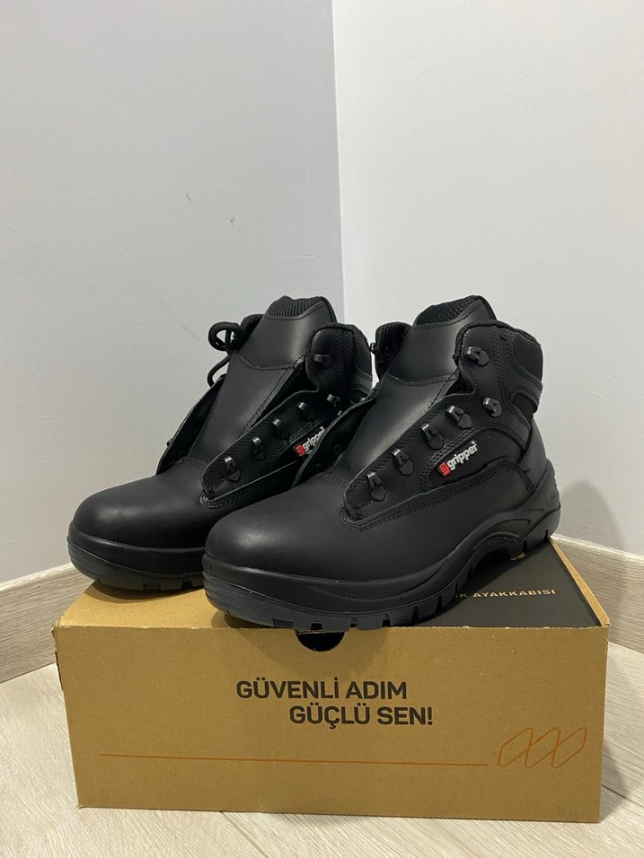 Siyah bağcıklı, erkek bot. 43 numaradır. Üretim yılı 2025/11. Anti statik ve oil resistant ( yağa dayanıklı) özellikleri vardır.