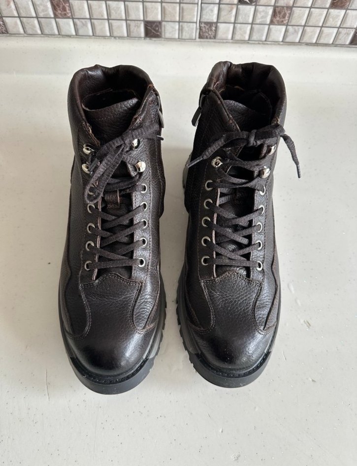 Koyu kahverengi deri biker botlar, tokalı detaylarla günlük sokak stiline uygun. Desensiz ve trend. İhtiyaç fazlası olduğundan iki kez kullanıldı sadece sıfır ayarında Çok rahat ve sıcak tutan kaliteli sağlam bir bot makul teklifler kabul edilir