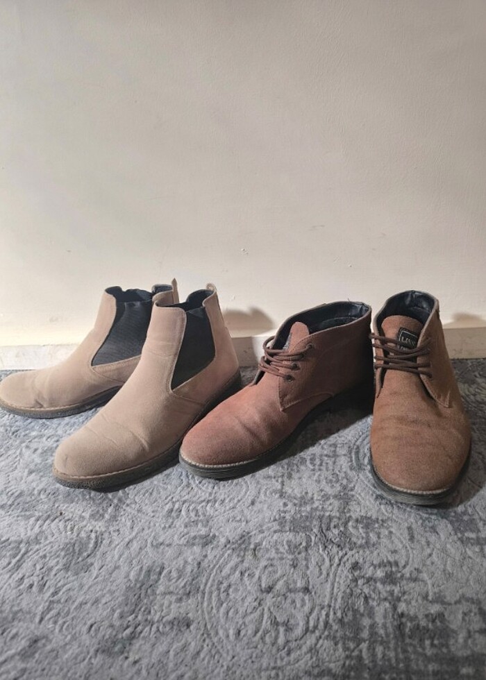 2 adet erkek bot. Kahve olanı yurtdışında almıştım, içi polarlıdır. Diğerini de rengi ve modelini beğendiğim için uygun diye almıştım. İkisi de 43 numara. Açılma, yırtık vs yoktur. İkisi birden tek fiyata ! Ücretsiz kargo ! Diğer ilanlarımda ayağımdayken olan resimleri ekleyeceğim.