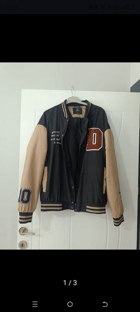 Kahverengi ve siyah deri ceket, uzun kollu ve düğmeli tasarımıyla günlük sokak stiline uygun, bol kesim ve baskılı detaylara sahiptir.
