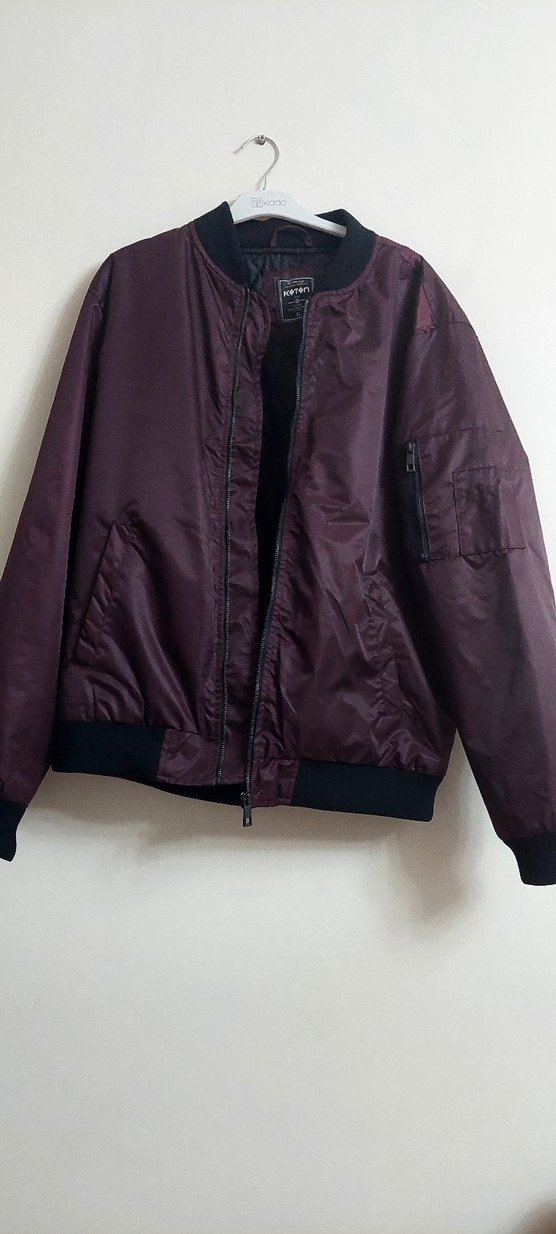 Mor parlak renkli sentetik kumaştır XL beden normal kalıp kaban az kullanıldı