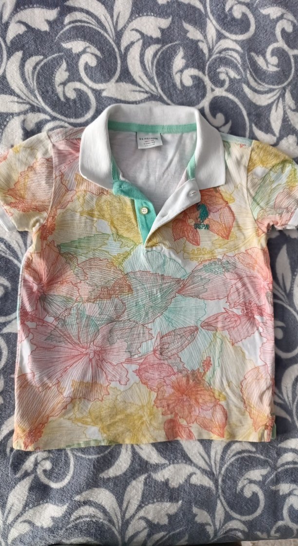 Erkek çocuklar için, yakalı ve düğmeli, kısa kollu, pastel çiçek desenli, sentetik yumuşak kumaştan fitted kesim polo tişört.