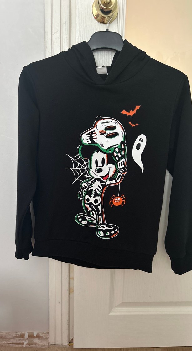 Uzun kollu, bisiklet yaka , siyah renkli, kapişonlu desenli erkek çocuk sweatshirtü.