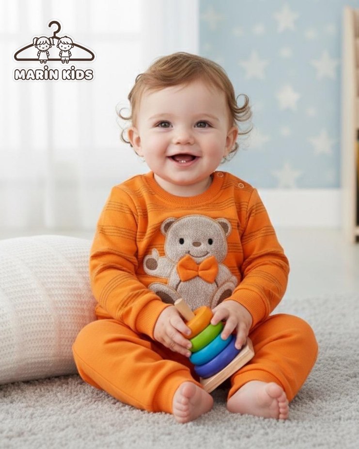 Turuncunun enerjisiyle 2 iplik ikili takımımız 9-12-18 ay seçenekleriyle stoklarımızda mevcuttur.