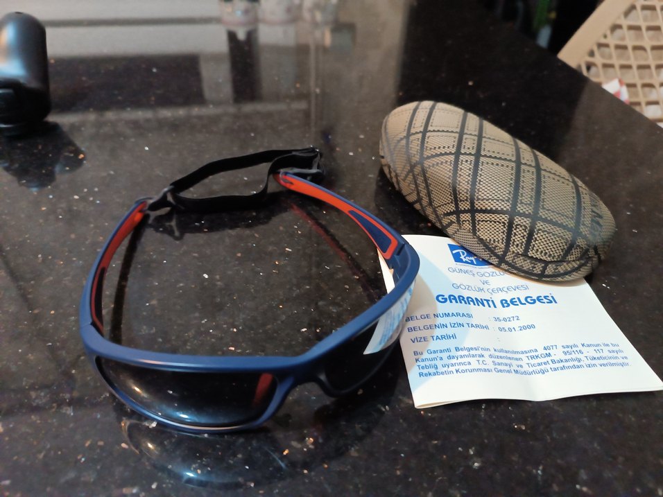 Koyu mavi biker tarzı, sportif tasarımlı güneş gözlüğü. Garanti belgesi ile trendy casual görünüme uygun. Kutusu biraz küçük geliyor. Çok az kullanıldı.