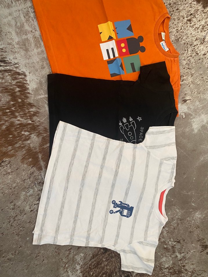 Üçlü renkli erkek çocuk tişört seti, kısa kollu, baskılı desenli, yuvarlak yaka ve rahat kesim. Yumuşak tekstil malzemeden, cırt cirt detaylı.