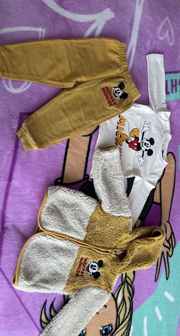 Hırka ve eşofman alt takımdır 12/18 ay Tişörtü kendim uydurup ayrı aldım kalıbı büyük olduğu için 9/12 aldım. Ama hepsini aynı zamanda takım olarak kullandık.