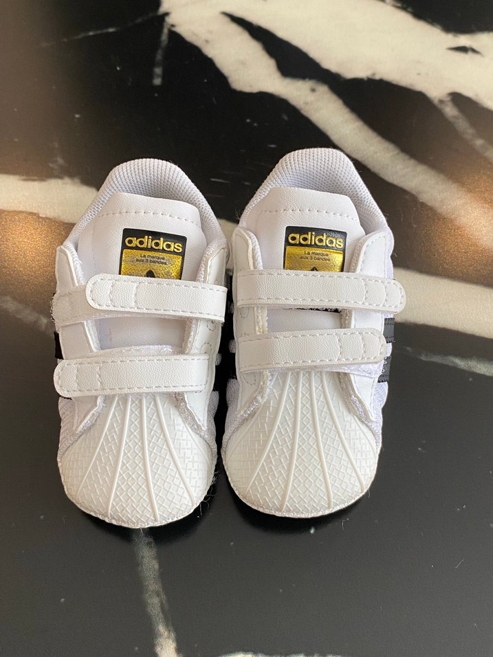 Ürün Orijinaldir. Deformasyonu yoktur fotoğrafta göründüğünüz gibi yeni ve temiz Renkli desenli, beyaz Adidas erkek çocuk spor ayakkabısı, cırt cırtlı ve kauçuk tabanlı, sokak stili için uygun.