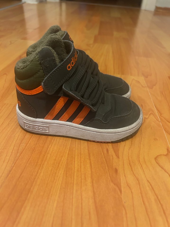 Adidas erkek çocuk spor ayakkabısı, Velcro bantlı, kauçuk tabanlı, haki ve turuncu renklerde Hiç bir sorunu yoktur kısa süre giyindi oğlum hem kız hem erkek içindir.
