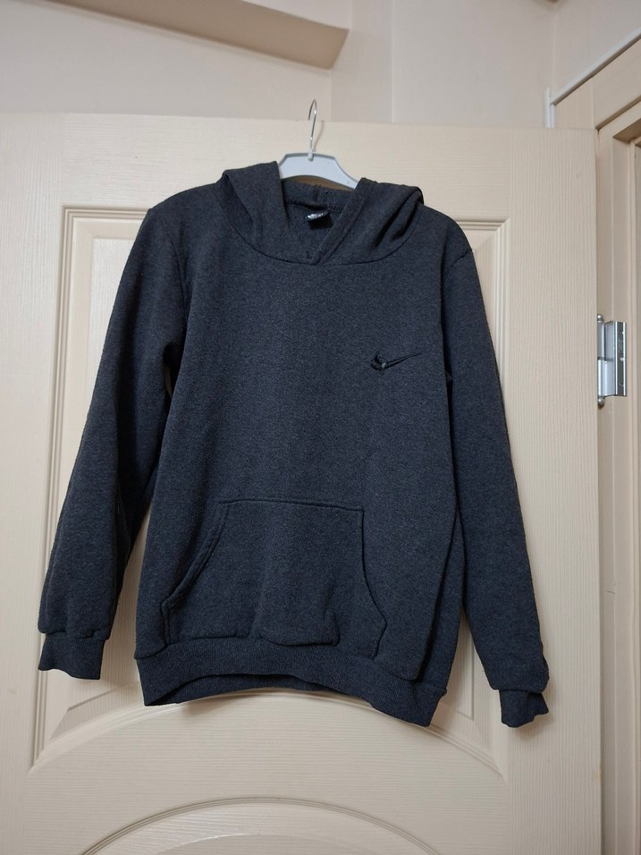 Gri renkli, düğmeli ve bol kesim uzun kollu kadın sweatshirt. Yumuşak ve sıcak kumaştan, günlük kullanıma uygun. ürün temiz kullanılmıştır iki koltuk altı 47 cm omuzdan aşağıya boyu 61 cm dir sadece öndeki logoda Sökük var kullanıma engel değildir son görselde mevcuttur