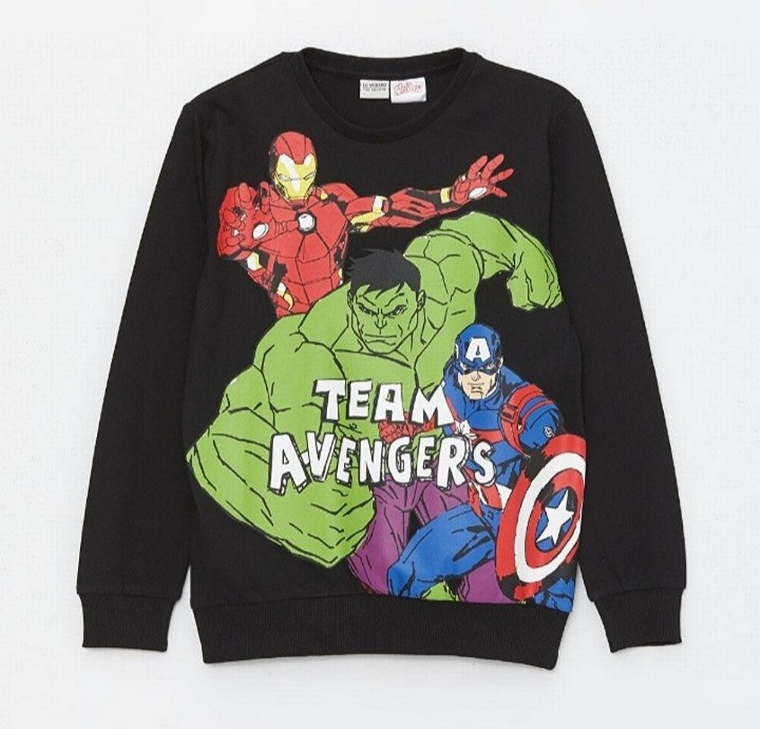Cift iplikk .. bir kez giyildi.Erkek çocuklar için renkli Avengers baskılı sweatshirt. Yuvarlak yaka, uzun kollu, vücuda oturan kesim ve cırt cırtlı detaylı, yumuşak ve sıcak kumaştan üretilmiştir. ♂️
