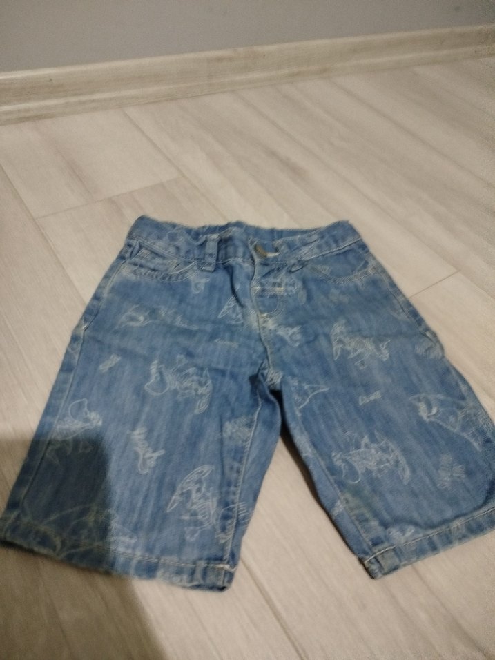 Bağcıklı detaylı, gri mavi renkli, bağlama desenli, bol kesim erkek çocuk denim şort.