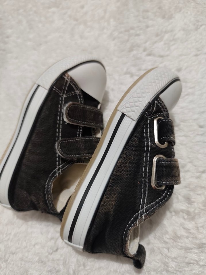 Kahverengi ve gri bağlamalı bantlı, lastik tabanlı bağcıksız erkek çocuk spor ayakkabısı, tie-dye desenli sokak stili için uygun.