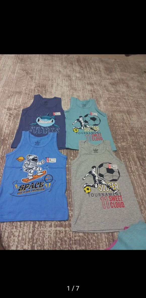 Gri ve mavi renklerde, baskılı desenli erkek çocuk kolsuz atlet 1 adet Uzay ve futbol temalı yazılar içerir. ⚽
