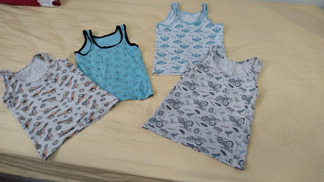 Erkek çocuklar için mavi ve gri renklerde, baskılı desenlere sahip, yumuşak kumaşlı atlet seti. 4 adet toplu satış.. temiz kullanıldı. 2.5 3.5 yaş arası olur