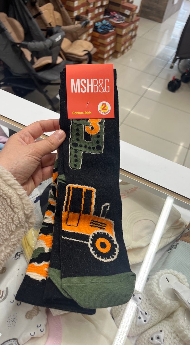 Pamuk zengin içerikli, koyu ve çok renkli baskılı traktör desenli erkek çocuk çorabı. 6 7 8 9 yaş var
