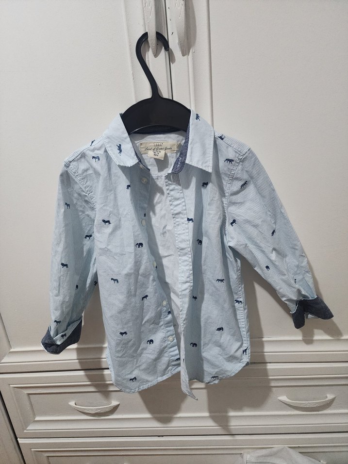 Erkek çocuk için uzun kollu, yakalı ve düğmeli pamuk gömlek. Baskılı deseni ve rahat kesimi ile sokak stiline uygundur. Renk: gri.