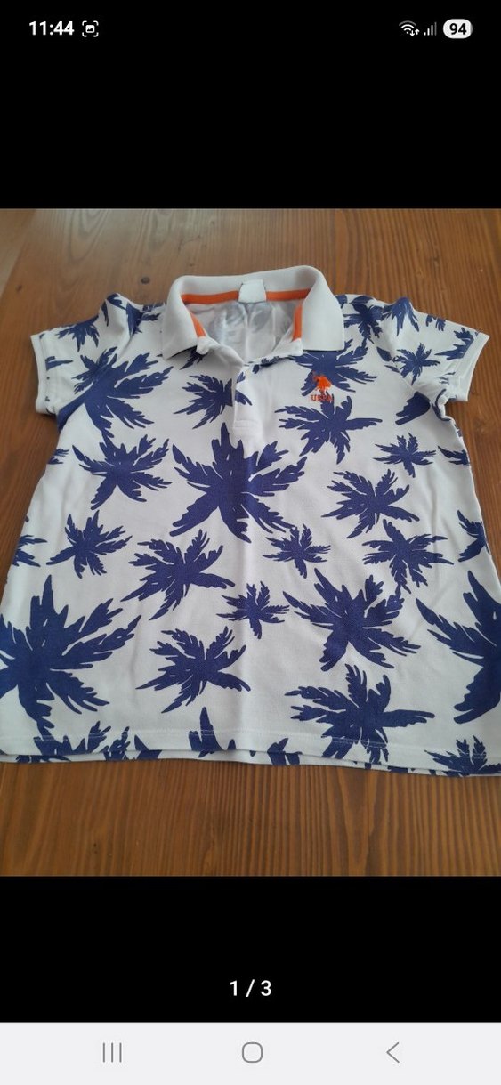 Erkek çocuk için kısa kollu, yakalı ve düğmeli baskılı polo tişört. Rahat kesimiyle beyaz zemin üzerinde mavi desenlere sahip, sokak stiline uygun.