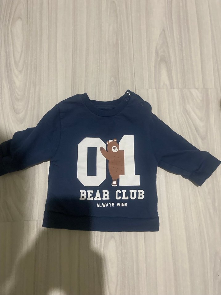 Erkek çocuk için uzun kollu, bisiklet yaka ve yumuşak fleece kumaştan yapılmış lacivert baskılı sweatshirt. Üzerinde '01 BEAR CLUB ALWAYS WINS' ve ayı figürü bulunur.
