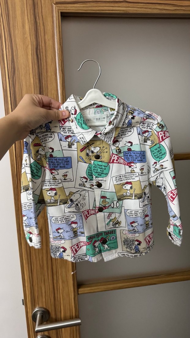 Pamuk kumaştan, düğmeli, uzun kollu, yakalı ve rahat kesim erkek çocuk gömleği. Canlı çizgi roman baskılı, sokak stiline uygun.