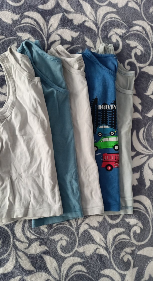 Mavi, gri ve açık tonlarda düz ve baskılı erkek çocuk atletleri. Yumuşak kumaş ve rahat kesim içerir.